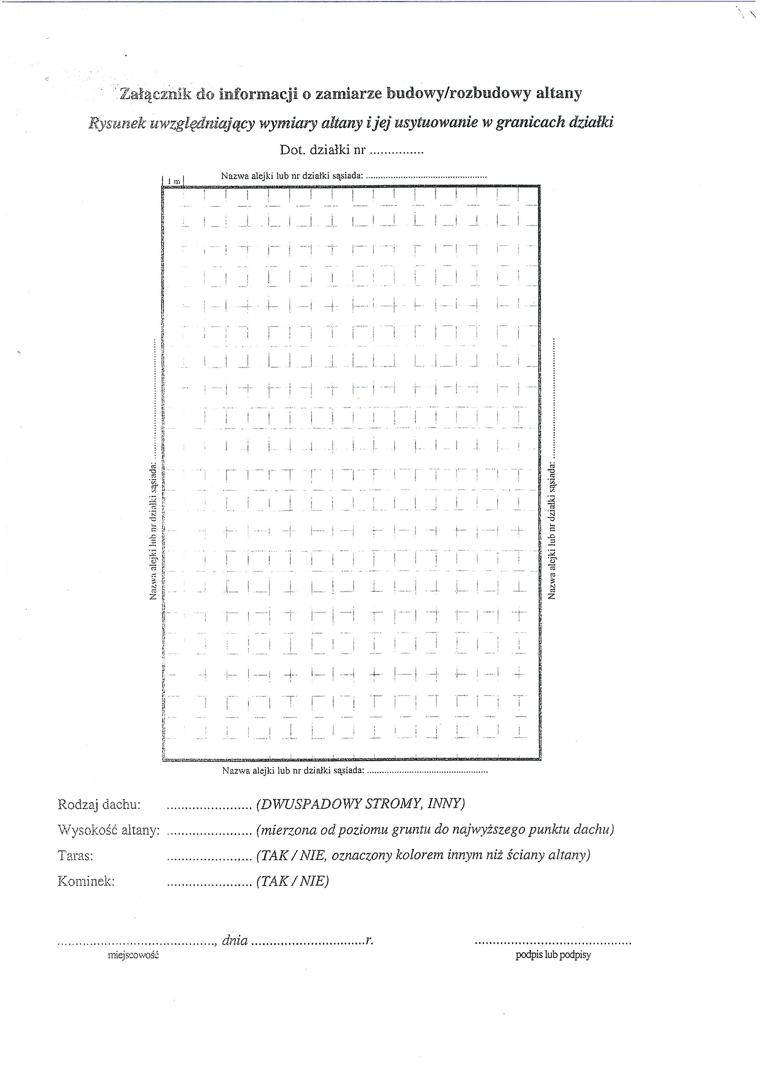 Wzór załącznika z rysunkiem usytuowania altany